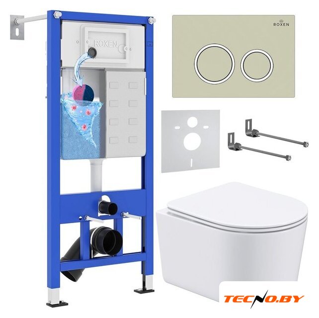 Унитаз подвесной Roxen Simple Compact в комплекте с инсталляцией StounFix Dual Fresh 6 в 1 966278 (кнопка: бежевый)