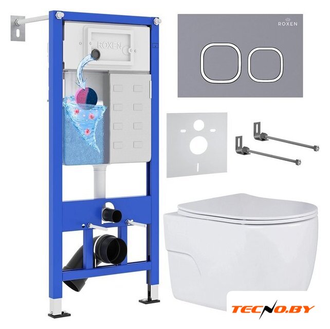 Унитазы Roxen Roxen Porto в комплекте с инсталляцией StounFix Dual Fresh 6 в 1 966397 (кнопка: серый бетон)