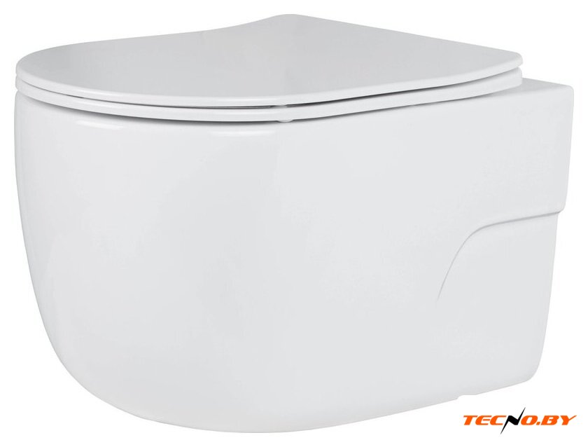 подвесной, конструкция: без бачка, задний подвод воды, горизонтальный выпуск, двухрежимный слив, с сиденьем, безободковый