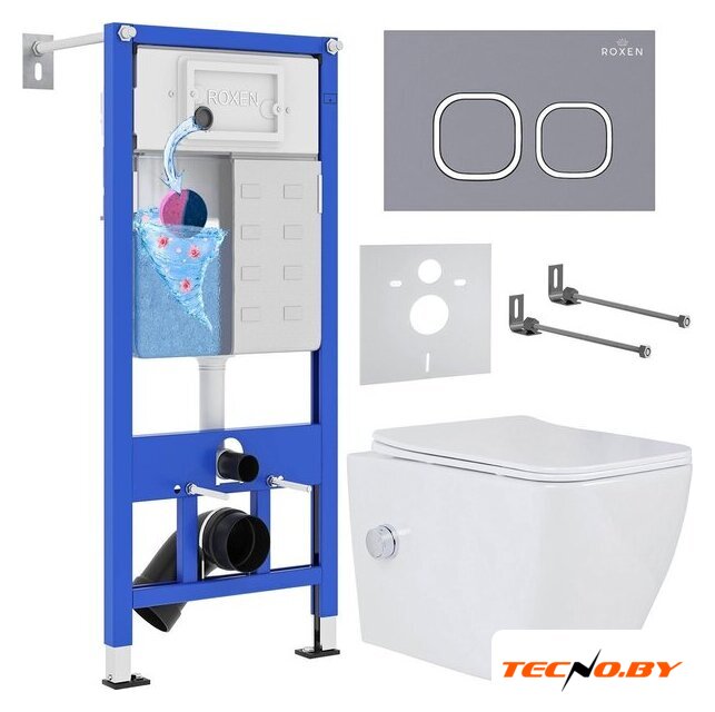Унитазы Roxen Roxen Cube bidet в комплекте с инсталляцией StounFix Dual Fresh 6 в 1 966426 (кнопка: серый бетон)