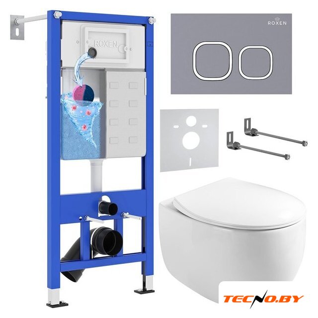 Унитазы Roxen Roxen Egg в комплекте с инсталляцией StounFix Dual Fresh 6 в 1 966436 (кнопка: серый бетон)