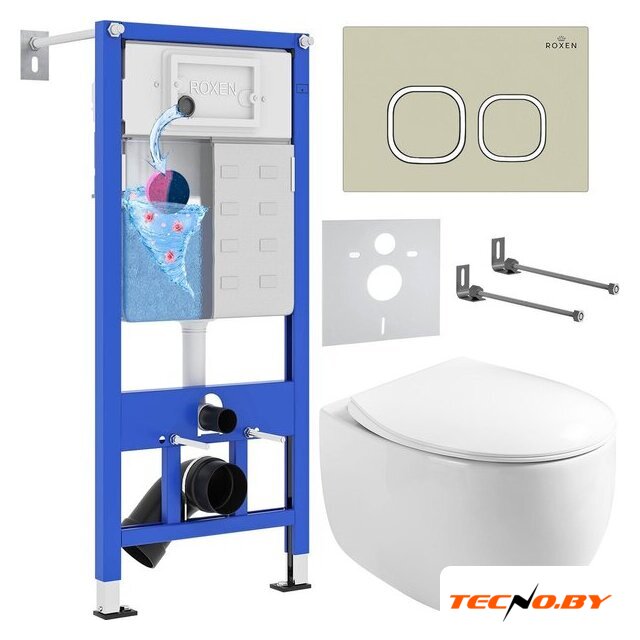 Унитазы Roxen Roxen Egg в комплекте с инсталляцией StounFix Dual Fresh 6 в 1 966619 (кнопка: бежевый)