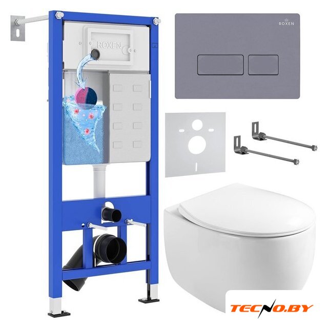 Унитазы Roxen Roxen Egg в комплекте с инсталляцией StounFix Dual Fresh 6 в 1 966842 (кнопка: серый гранит)