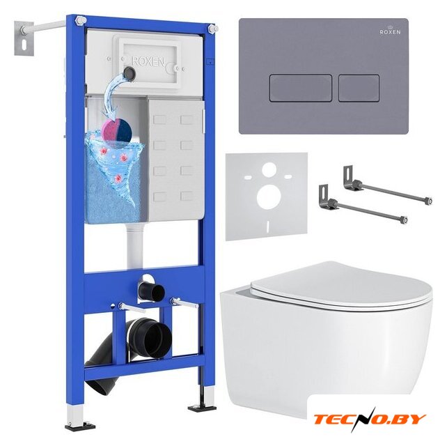 Унитазы Roxen Roxen Vortex в комплекте с инсталляцией StounFix Dual Fresh 6 в 1 966868 (кнопка: серый гранит)