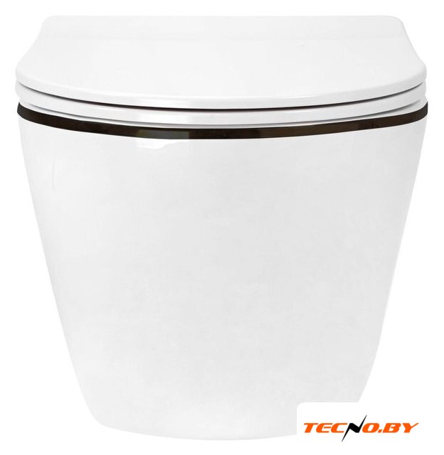 подвесной, конструкция: без бачка, задний подвод воды, горизонтальный выпуск, двухрежимный слив, с сиденьем, безободковый
