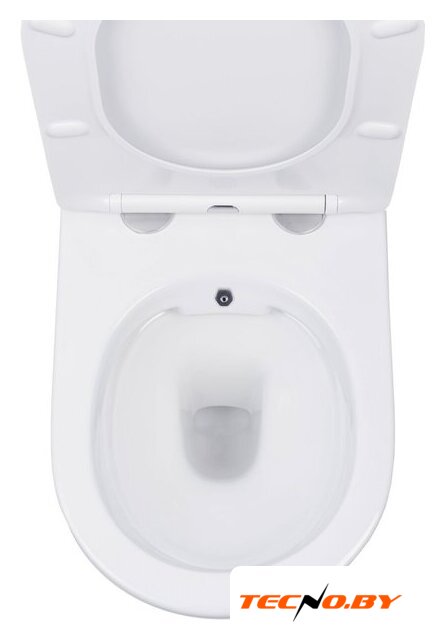 подвесной, конструкция: без бачка, задний подвод воды, горизонтальный выпуск, двухрежимный слив, с сиденьем, безободковый