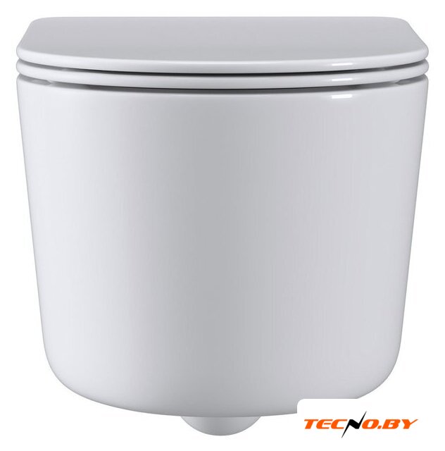 подвесной, конструкция: без бачка, задний подвод воды, горизонтальный выпуск, двухрежимный слив, с сиденьем, безободковый