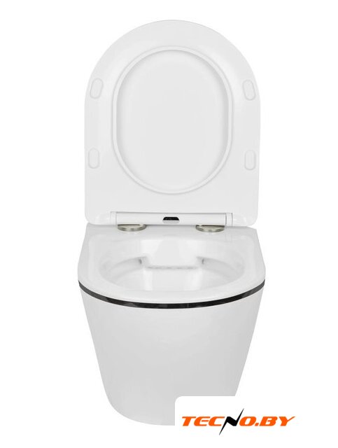 подвесной, конструкция: без бачка, задний подвод воды, горизонтальный выпуск, однорежимный слив, с сиденьем, безободковый