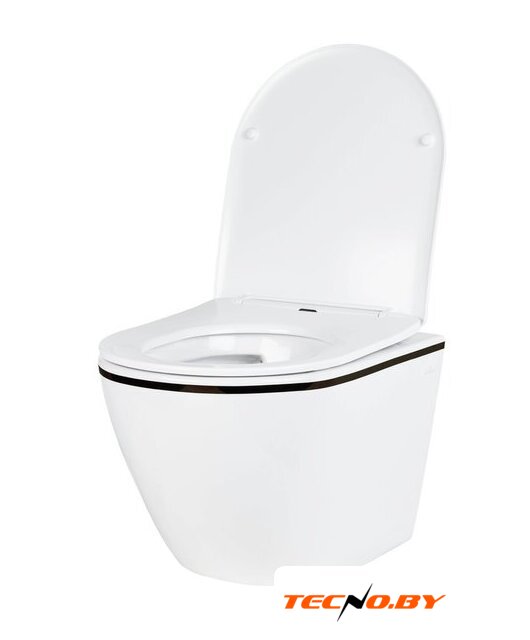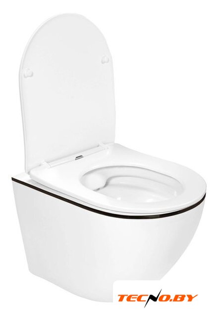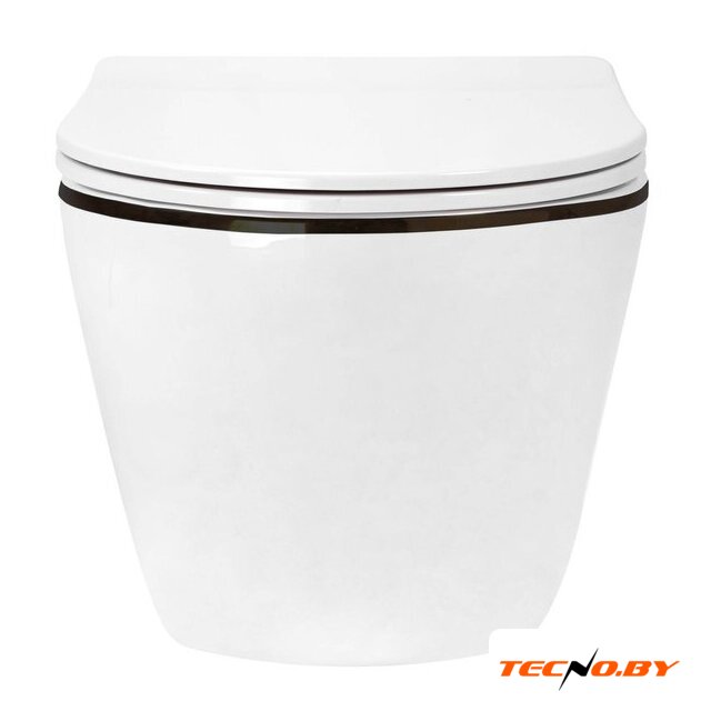подвесной, конструкция: без бачка, задний подвод воды, горизонтальный выпуск, с сиденьем, безободковый