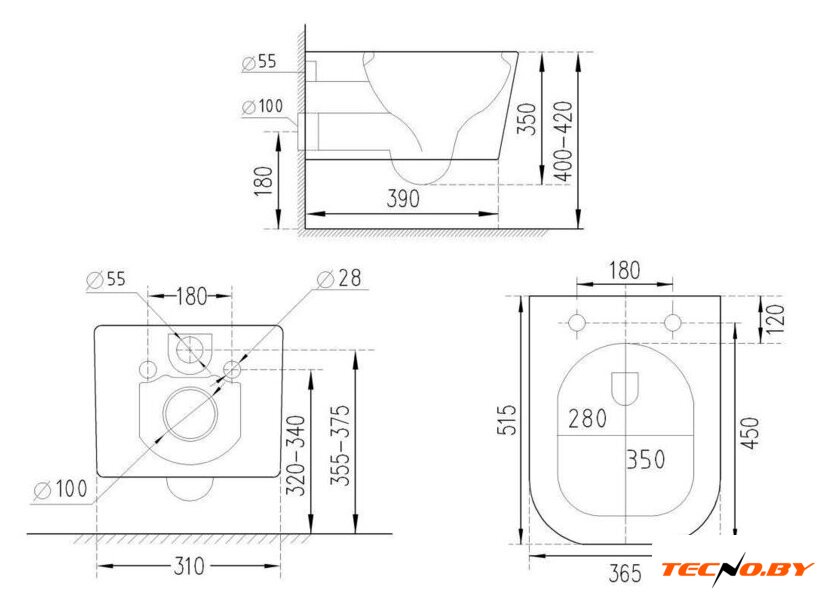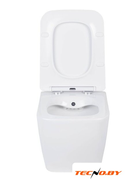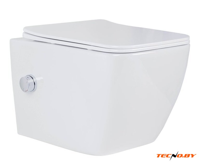 подвесной, конструкция: без бачка, задний подвод воды, горизонтальный выпуск, двухрежимный слив, с сиденьем, безободковый