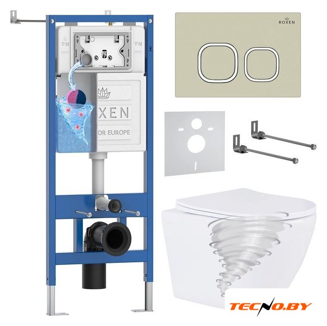 Унитазы Roxen Roxen Antares Tornado Long в комплекте с инсталляцией StounFix Dual Fresh 6 в 1 868436 (кнопка: пастель бежевый матовая)
