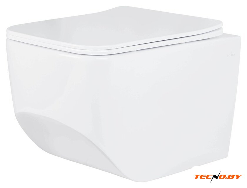 подвесной, конструкция: без бачка, задний подвод воды, горизонтальный выпуск, двухрежимный слив, с сиденьем, безободковый