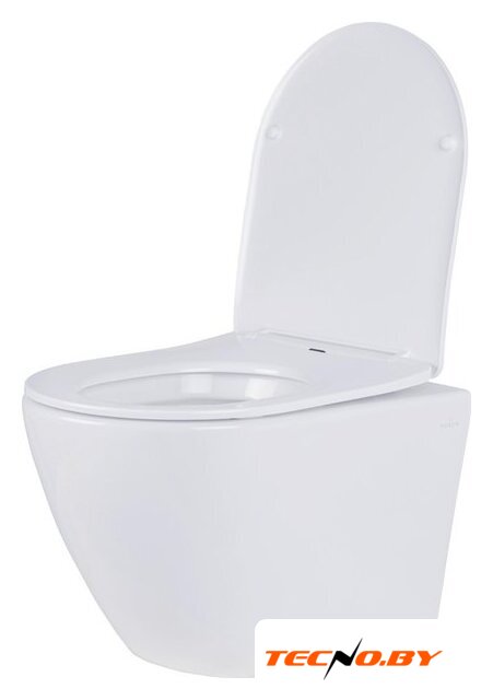 подвесной, конструкция: без бачка, задний подвод воды, горизонтальный выпуск, двухрежимный слив, с сиденьем, безободковый