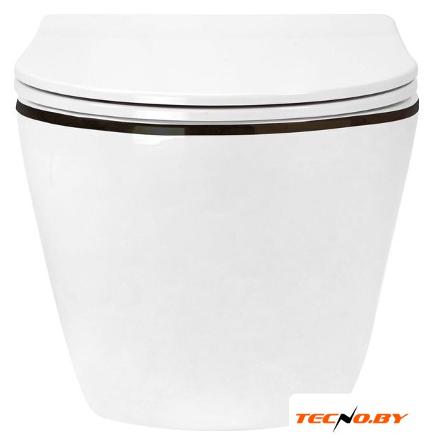подвесной, конструкция: без бачка, задний подвод воды, горизонтальный выпуск, двухрежимный слив, с сиденьем, безободковый