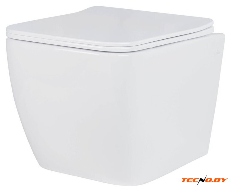 подвесной, конструкция: без бачка, задний подвод воды, горизонтальный выпуск, двухрежимный слив, с сиденьем, безободковый