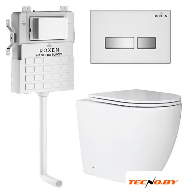 приставной, конструкция: без бачка, задний подвод воды, горизонтальный выпуск, двухрежимный слив, с сиденьем, безободковый