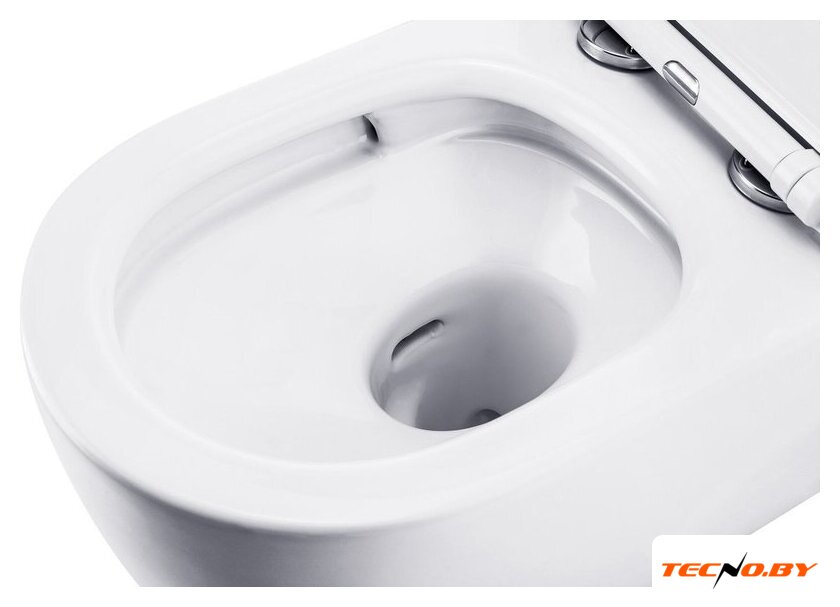 подвесной, конструкция: без бачка, задний подвод воды, горизонтальный выпуск, двухрежимный слив, с сиденьем, безободковый