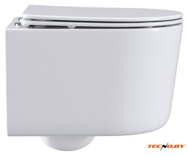 подвесной, конструкция: без бачка, задний подвод воды, горизонтальный выпуск, двухрежимный слив, с сиденьем, безободковый