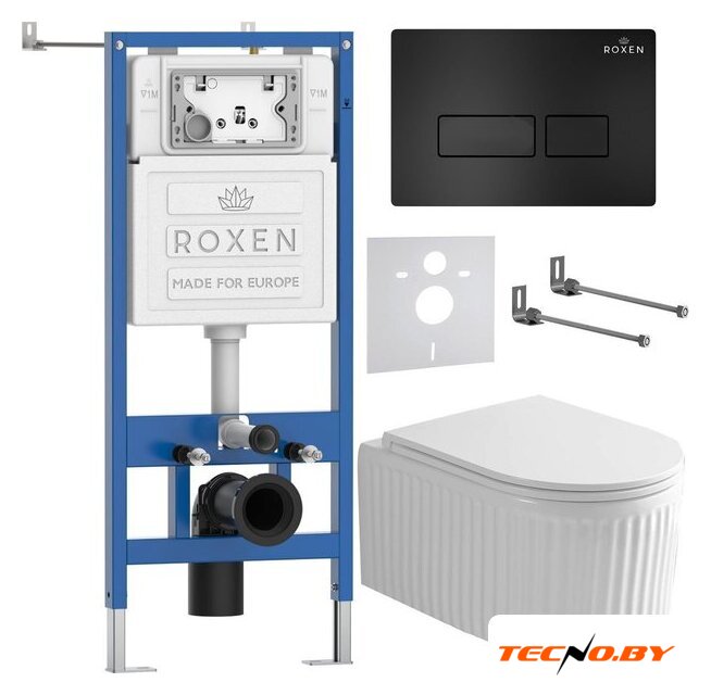 Унитаз подвесной Roxen Royal Matt в комплекте с инсталляцией StounFix Dual Fresh 6 в 1 968211 (кнопка: черный)