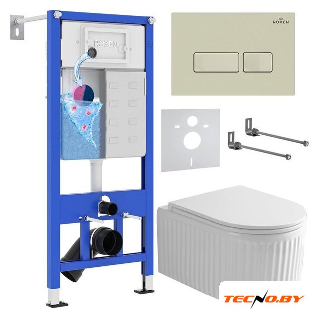 подвесной, конструкция: без бачка, задний подвод воды, горизонтальный выпуск, двухрежимный слив, с сиденьем, безободковый
