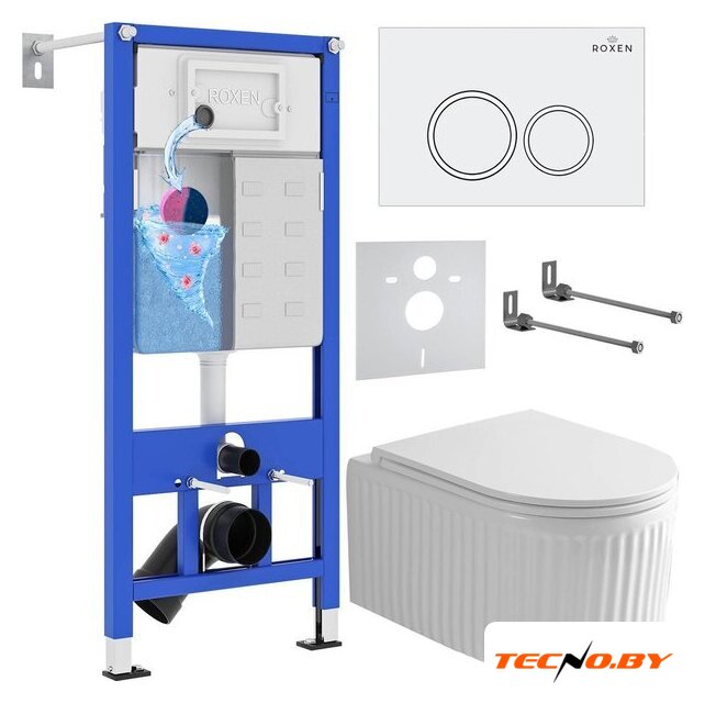 подвесной, конструкция: без бачка, задний подвод воды, горизонтальный выпуск, двухрежимный слив, с сиденьем, безободковый