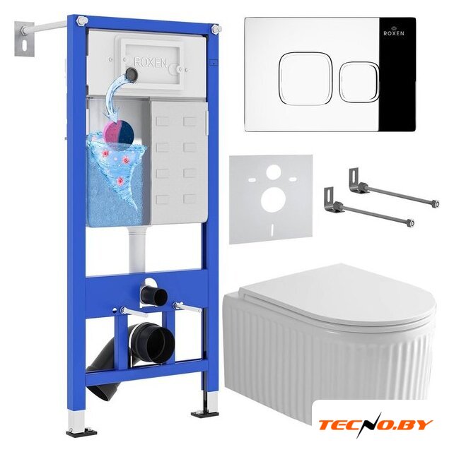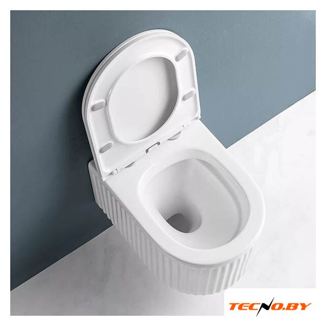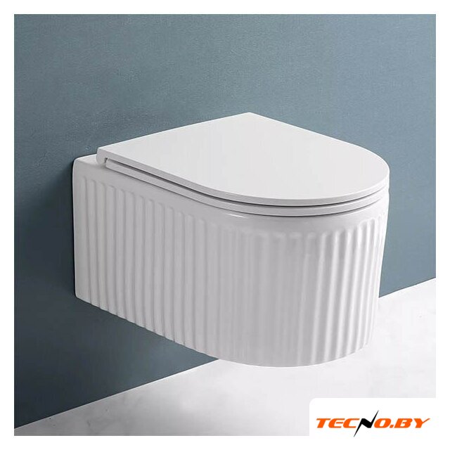 подвесной, конструкция: без бачка, задний подвод воды, горизонтальный выпуск, двухрежимный слив, с сиденьем, безободковый
