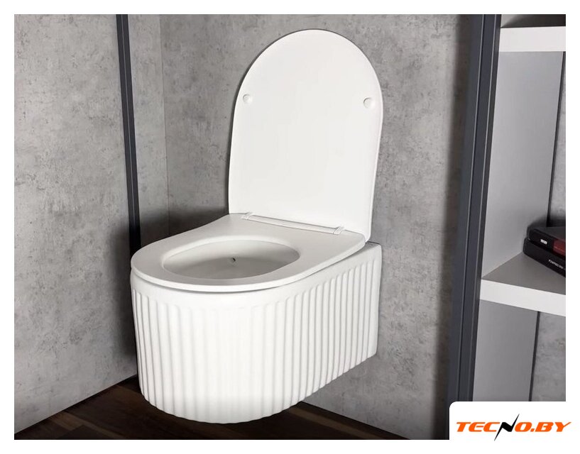 подвесной, без бачка, задний подвод воды, горизонтальный выпуск, двухрежимный слив, с сиденьем