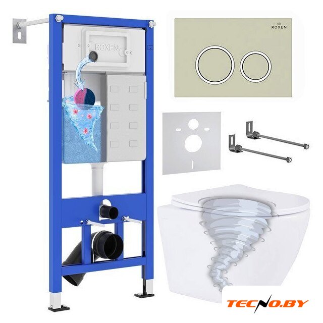 Унитазы Roxen Roxen Antares Tornado в комплекте с инсталляцией StounFix Dual Fresh 6 в 1 968346 (кнопка: пастель бежевый)