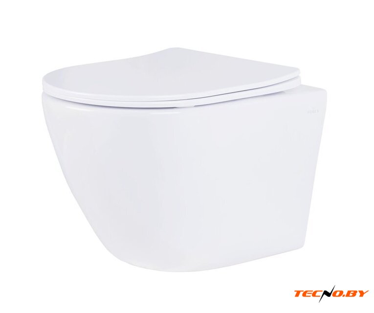 подвесной, конструкция: без бачка, задний подвод воды, горизонтальный выпуск, двухрежимный слив, с сиденьем, безободковый