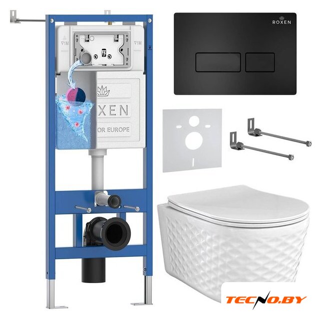 Унитазы Roxen Roxen Vine Tornado в комплекте с инсталляцией StounFix Dual Fresh 6 в 1 979001 (кнопка: черный матовый)