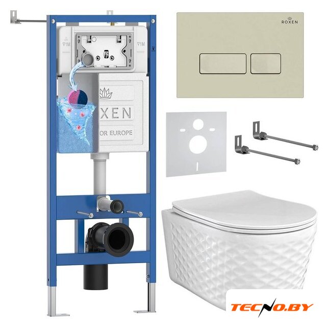 Унитазы Roxen Roxen Vine Tornado в комплекте с инсталляцией StounFix Dual Fresh 6 в 1 979004 (кнопка: бежевый)