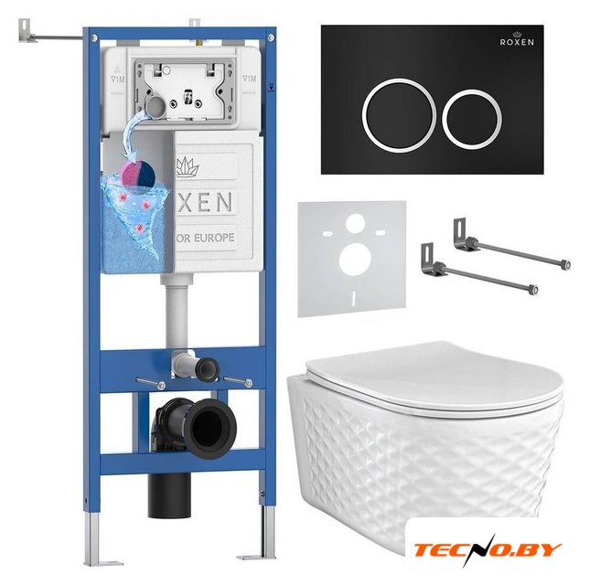 Унитазы Roxen Roxen Vine Tornado в комплекте с инсталляцией StounFix Dual Fresh 6 в 1 979008 (кнопка: черный матовый)