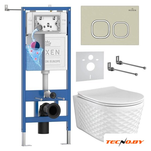 Roxen Porto в комплекте с инсталляцией StounFix Dual Fresh 6 в 1 966219 (кнопка: бежевый)