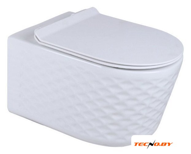 подвесной, конструкция: без бачка, задний подвод воды, горизонтальный выпуск, с сиденьем, безободковый
