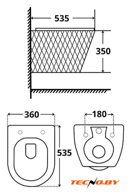 подвесной, конструкция: без бачка, горизонтальный выпуск, с сиденьем, безободковый