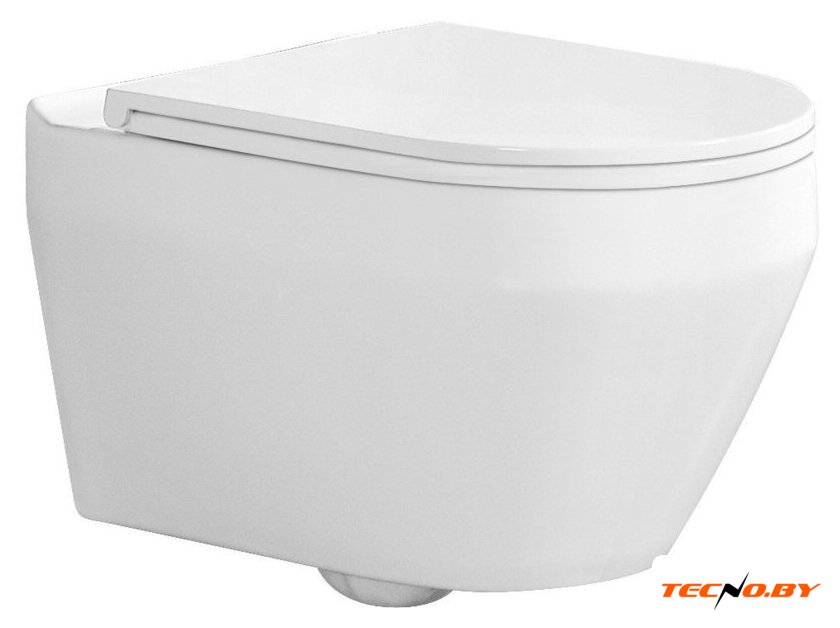 подвесной, конструкция: без бачка, задний подвод воды, горизонтальный выпуск, с сиденьем, безободковый