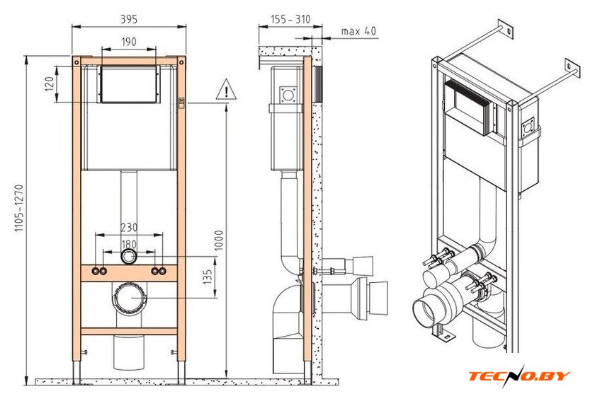 | Отверстия под инсталляцию | 180 мм |