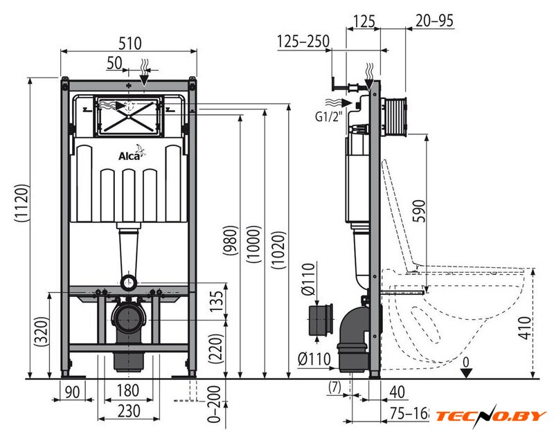 | Отверстия под инсталляцию | 180 мм |
