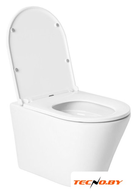 подвесной, конструкция: без бачка, задний подвод воды, горизонтальный выпуск, двухрежимный слив, с сиденьем, безободковый