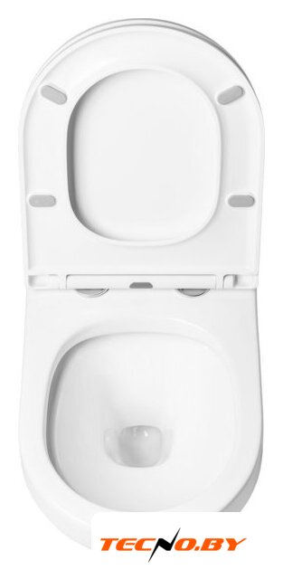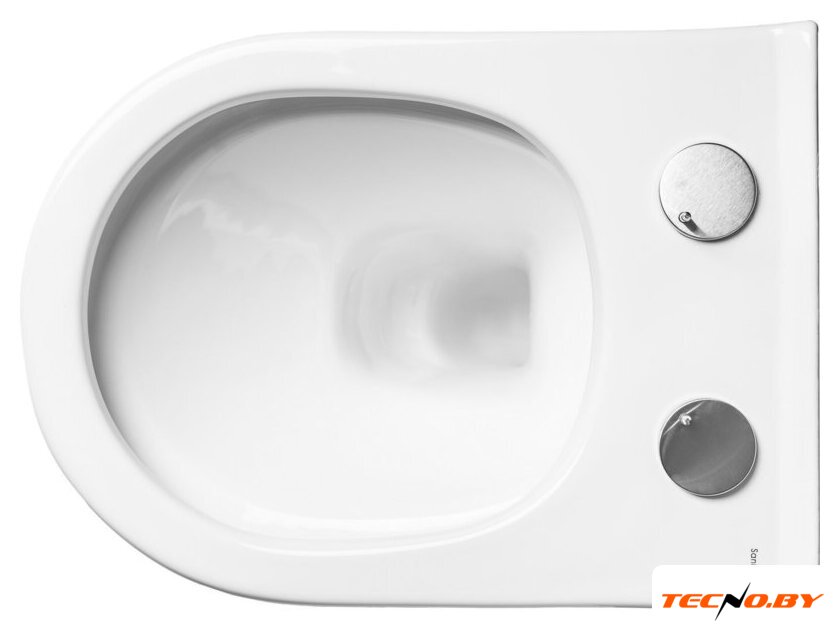 подвесной, конструкция: без бачка, задний подвод воды, горизонтальный выпуск, двухрежимный слив, с сиденьем, безободковый