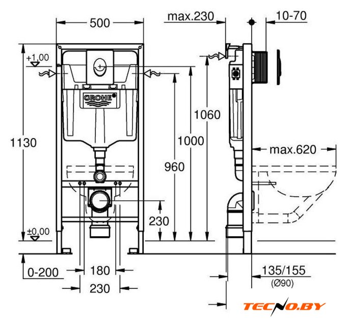 | Отверстия под инсталляцию | 180 мм |