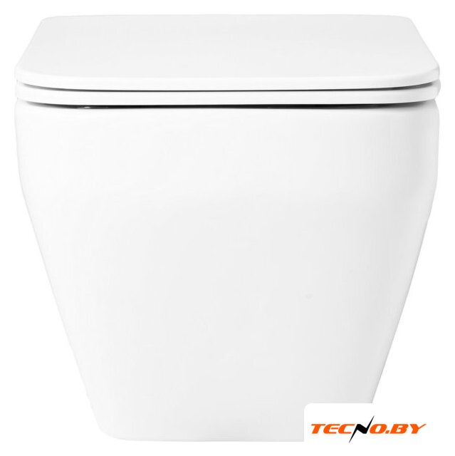 подвесной, конструкция: без бачка, задний подвод воды, горизонтальный выпуск, двухрежимный слив, с сиденьем, безободковый