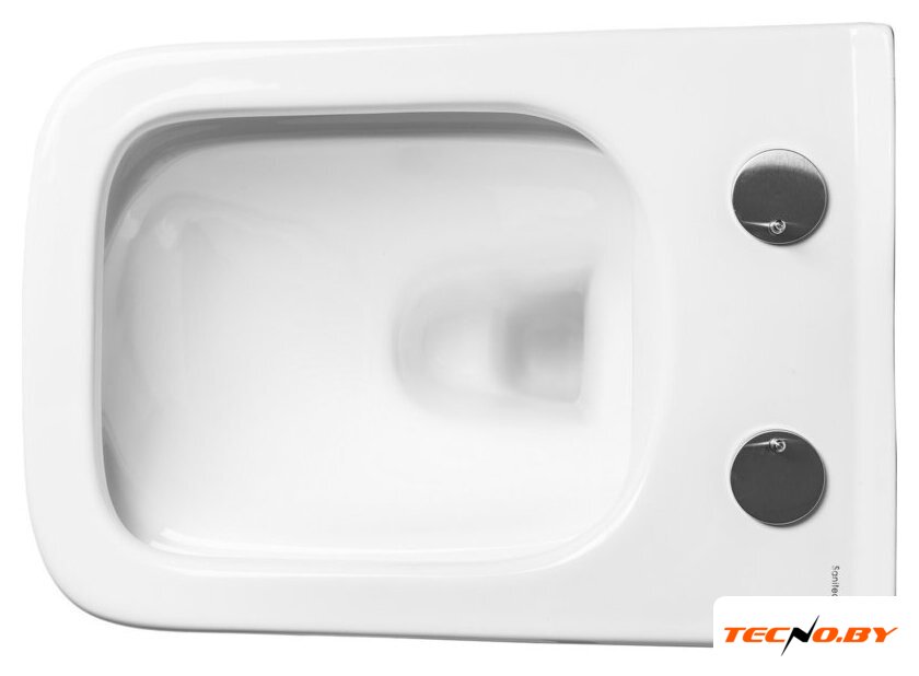 подвесной, конструкция: без бачка, задний подвод воды, горизонтальный выпуск, двухрежимный слив, с сиденьем, безободковый