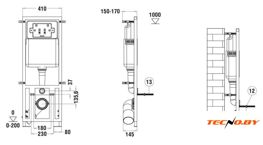 | Отверстия под инсталляцию | 210 мм |