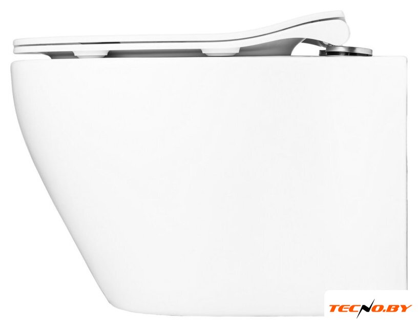подвесной, конструкция: без бачка, задний подвод воды, горизонтальный выпуск, двухрежимный слив, с сиденьем, безободковый