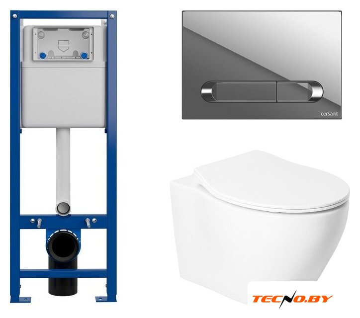 подвесной, конструкция: без бачка, задний подвод воды, горизонтальный выпуск, двухрежимный слив, с сиденьем, безободковый