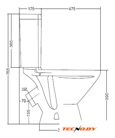 напольный, нижний подвод воды, однорежимный слив, с сиденьем