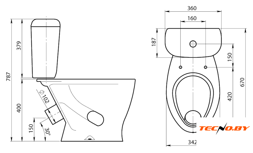 напольный, конструкция: компакт, нижний подвод воды, горизонтальный выпуск, однорежимный слив, с сиденьем