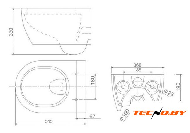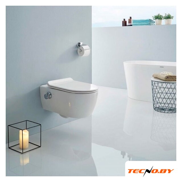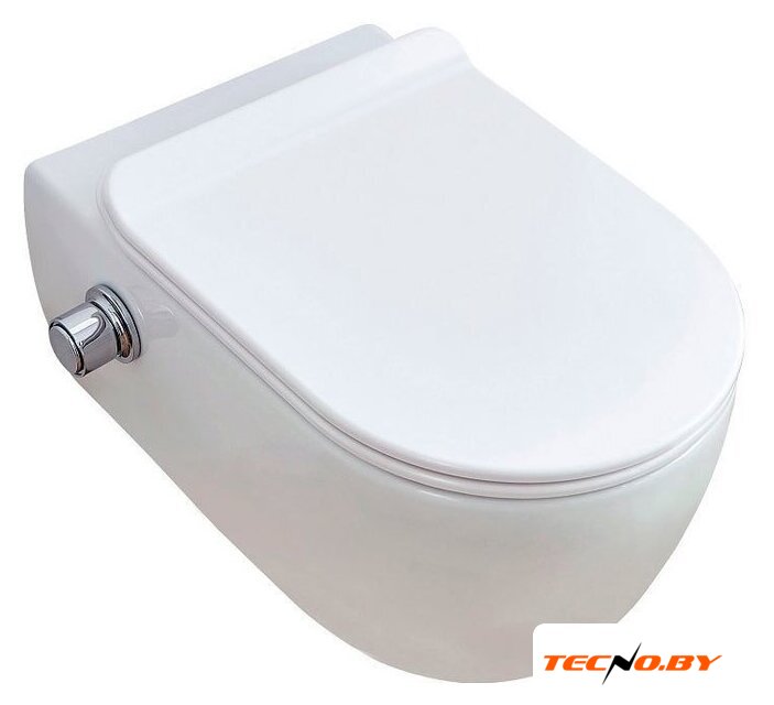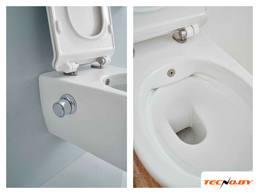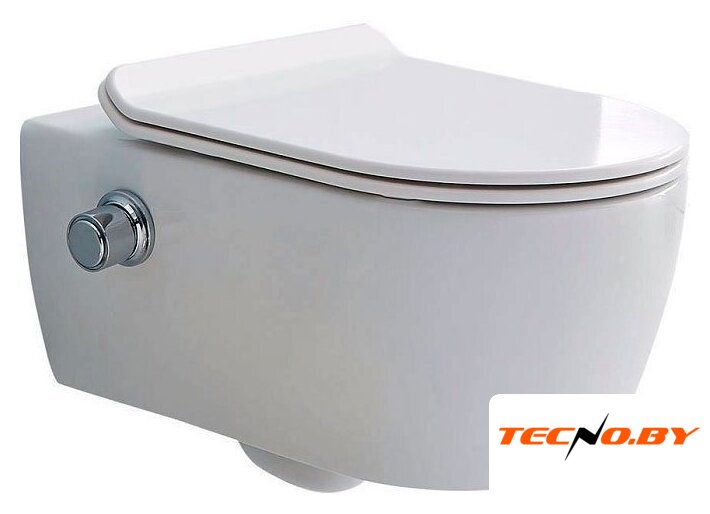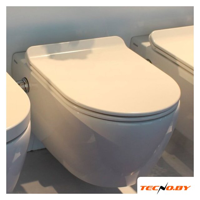 подвесной, конструкция: без бачка, задний подвод воды, горизонтальный выпуск, двухрежимный слив, с сиденьем, безободковый