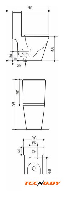 напольный, конструкция: компакт, нижний подвод воды, универсальный выпуск, двухрежимный слив, с сиденьем, безободковый